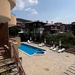 Als u in Apartment In Complex Sirena! Sveti Vlas van 58 m^2 verblijft, kunt u het Ziekenhuis bereiken, gelegen op circa 6 km afstand. Het appartement heeft een zwembad en een terras, dat op de zee uitkijkt.